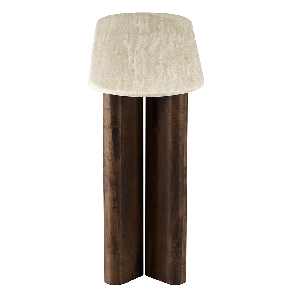 Brighten your hallway or living area with the Rhodes Console Table. Featuring a travertine-style top and a smooth, subtly toned base, it combines modern style with practical function in a sleek, slim design.