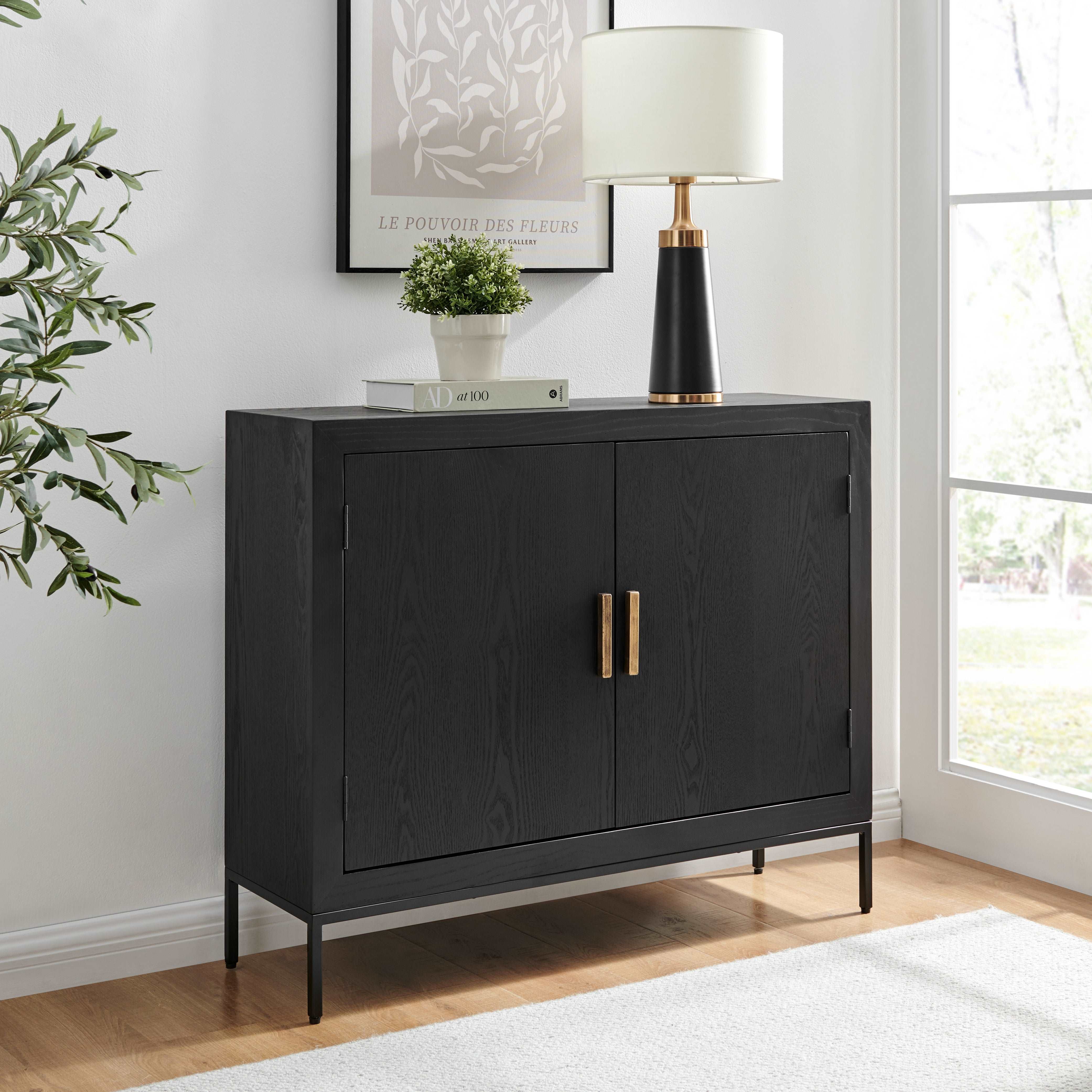 - Sleek and Refined: Discover the allure of the Brixton Black 2-Door Chest, an embodiment of timeless elegance that aligns seamlessly with your discerning taste.