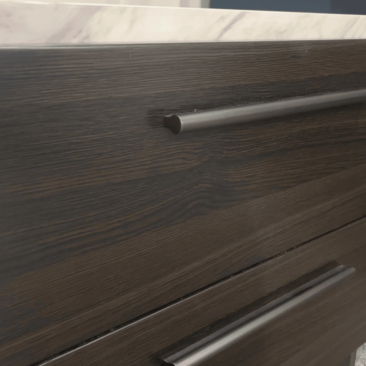 Elegant Design: The rich dark oak wood grain effect paired with a chic marble effect top creates a sophisticated look that complements both contemporary and traditional interiors.